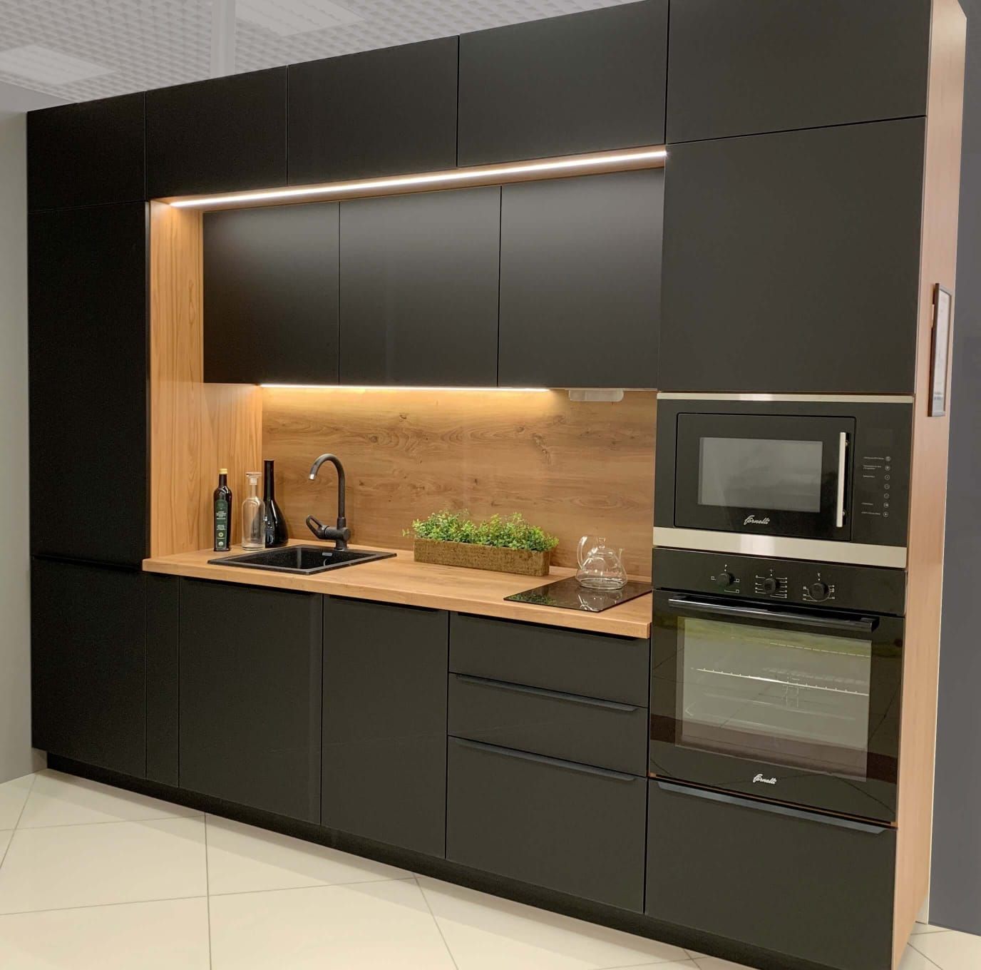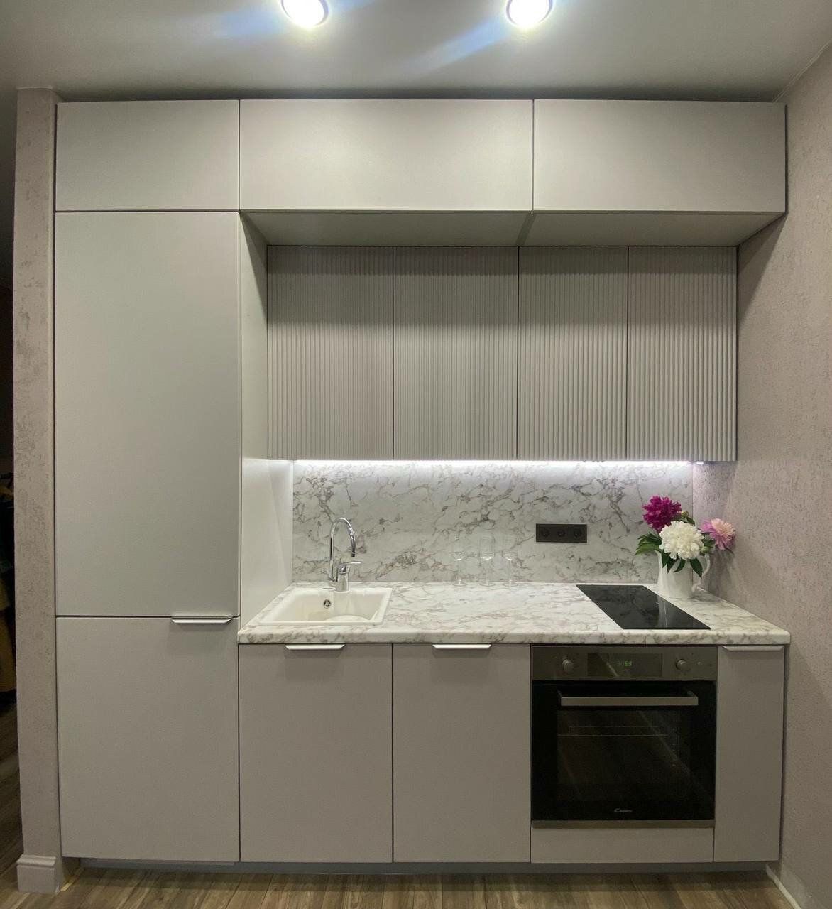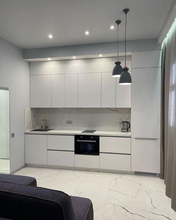 Такой тип кухонь отлично смотрится в небольших помещениях, его часто устанавливают в квартирах-студиях.