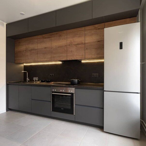 Распространенный тип кухонь, подходит для вытянутых в длину помещений.